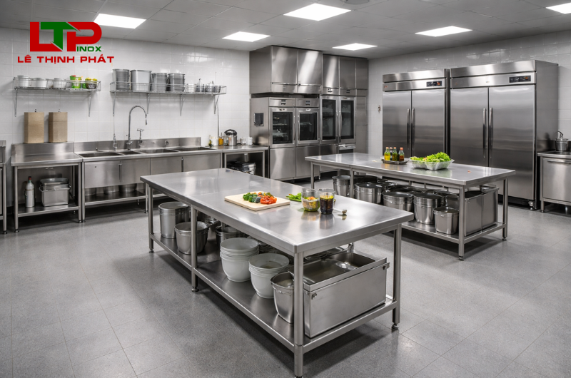 => Khuyến nghị: nên dùng inox 304 cho bếp nhà hàng.