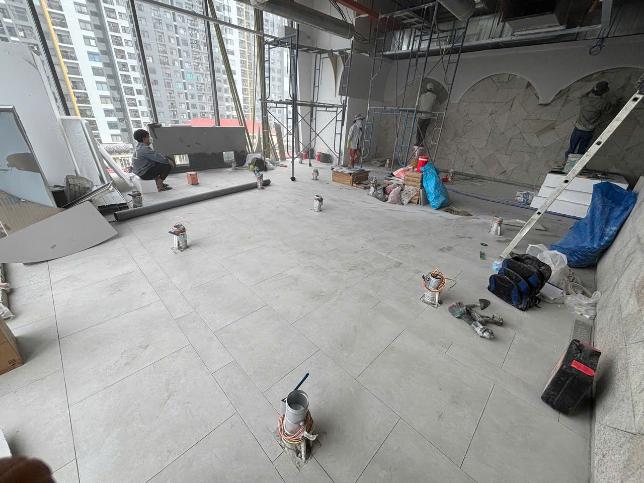 Lắp Đặt Quạt Hút Khói và Hệ Thống Ống Dẫn: Quá trình thi công bắt đầu với việc lắp đặt các quạt hút khói và hệ thống ống dẫn khói inox. Mỗi quạt hút khói được lắp đặt ở những vị trí chiến lược để tối ưu hóa việc hút khói từ các khu vực nấu nướng trong bếp.