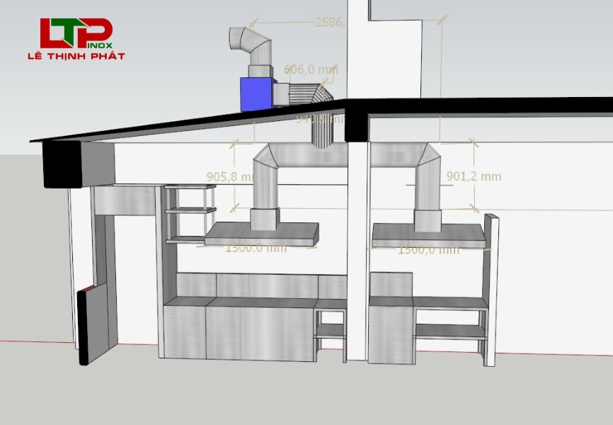 Hệ thống ống dẫn khói: Ống dẫn khói được làm từ vật liệu tôn tráng kẽm, đảm bảo độ bền cao và khả năng chịu nhiệt tốt. Các ống dẫn khói được bố trí sao cho không gian bếp luôn thông thoáng, và khói không lan ra ngoài.