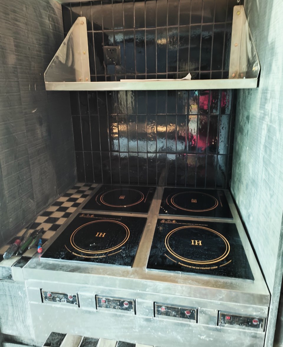 Adau Kitchen nằm lặng lẽ sau chiếc cửa xanh không nổi bật, đem đến cảm giác như bạn bước vào một bữa ăn ấm cúng trong nhà bạn bè – thanh lịch mà không cầu kỳ. Mô hình bếp mở tạo nên trải nghiệm ăn uống chân thật, gần gũi và tràn ngập cảm xúc. Việc lắp đặt thiết bị inox kết hợp bếp công nghiệp là giải pháp tối ưu và hiện đại.