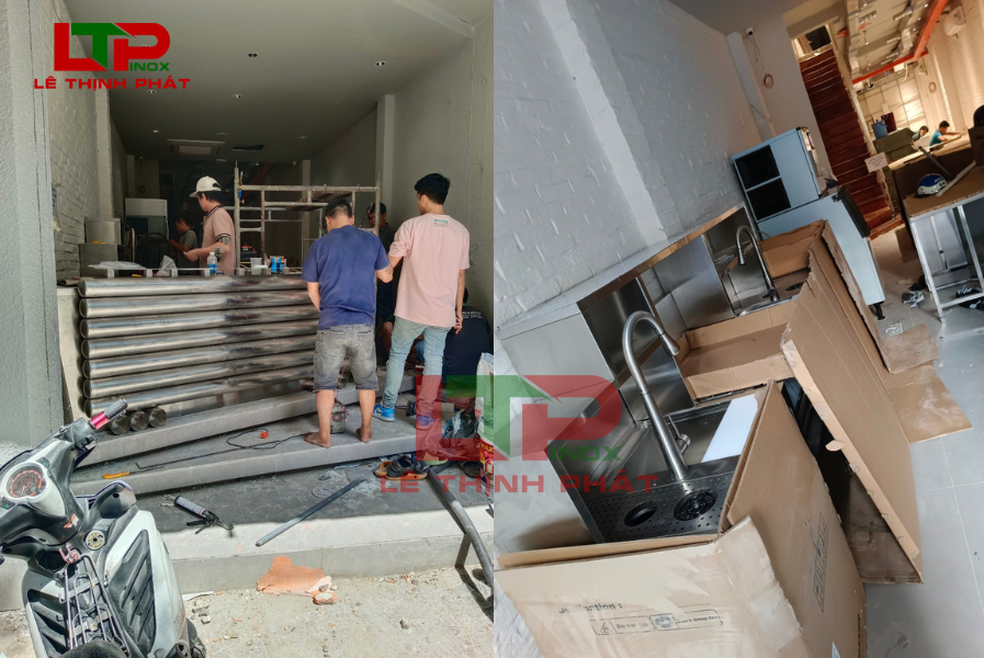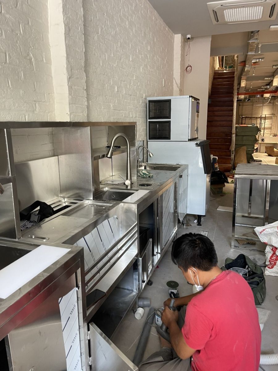 Quá trình lắp đặt các thiết bị inox và quầy pha chế tại Xi Hotpot on the Wok